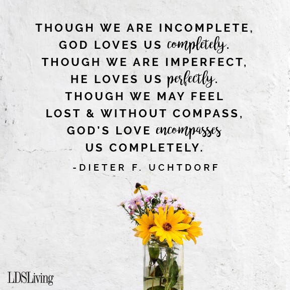 Though we may feel lost and without compass Gods love. LDS Quotations is a resource for quotes on Peace and 100s of other topics for talk or lesson prep or just to browse. Though we are imperfect He loves us perfectly.